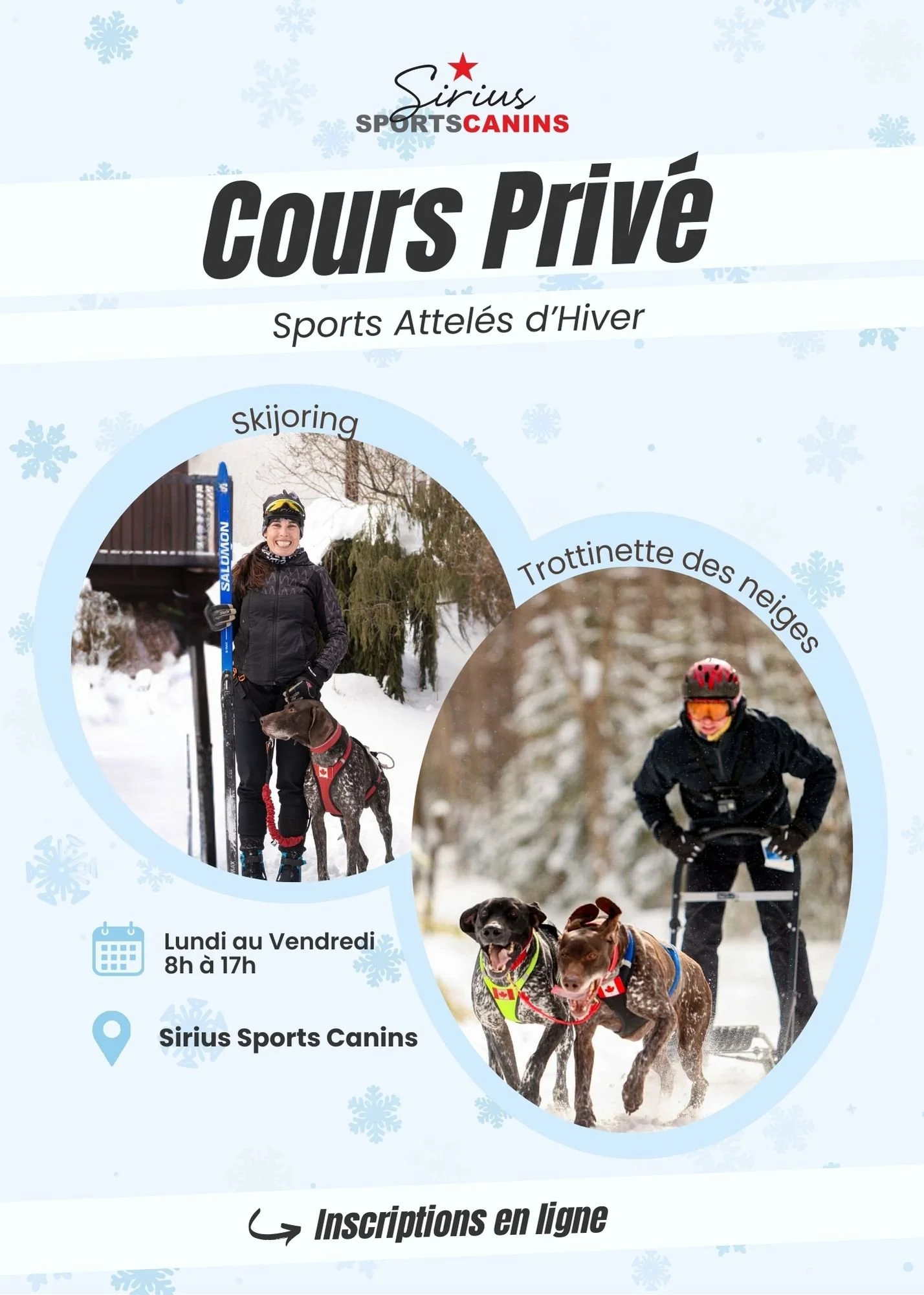 Chez Sirius, nous croyons que pratiquer un sport canin est une occasion parfaite de créer un lien unique avec son chien tout en s’amusant ensemble. Avec notre équipe, nous avons fait plus spécifiquement des sports attelés, notre spécialité. Les bienfaits physiques de ses sports sont très nombreux tels que dépenser positivement l’énergie de votre chien, maintenir une bonne santé et passer du temps en plein-air.